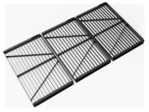 Segmented serrated cutting table for a CNC laser cutting machine, designed to support metal sheets while minimizing contact and improving cutting quality.